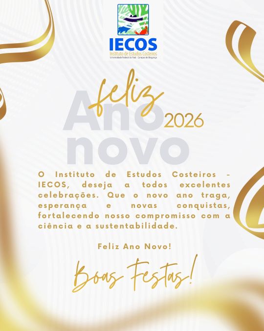 O Instituto de Estudos Costeiros (IECOS) compartilha com a comunidade acadêmica e a sociedade seus votos de Feliz Natal e um próspero Ano Novo de 2026. Que este período de celebrações seja marcado pela união, pelo fortalecimento dos vínculos e pela renovação das esperanças.