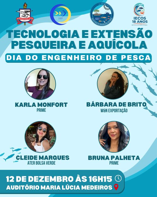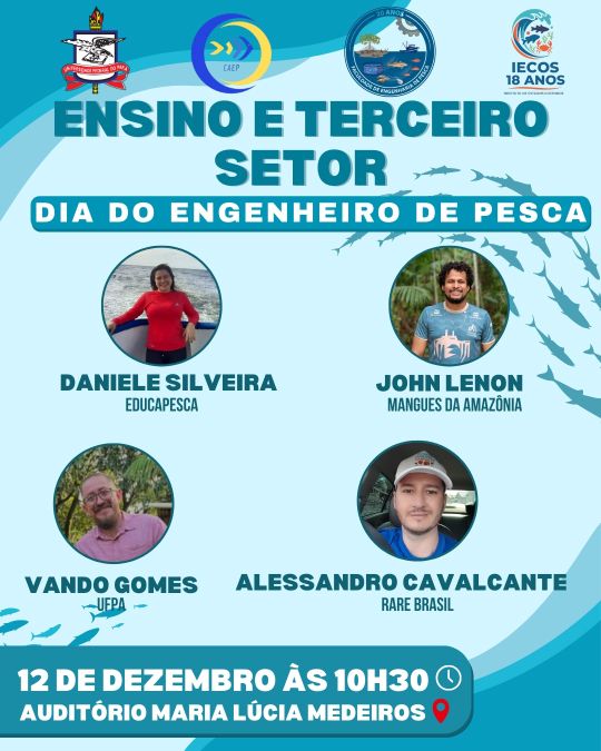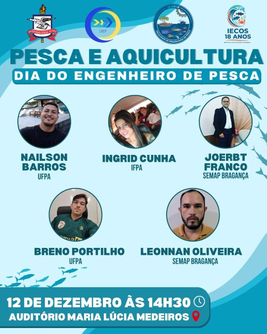 A Faculdade de Engenharia de Pesca,do Instituto de Estudos Costeiros, realiza hoje a programação especial para celebrar os 20 anos da FEPESCA e o Dia do EngenheirodePesca. O evento ocorre no Auditório Maria Lúcia Medeiros, em Bragança, reunindo representantes do setor público, instituições de ensino, organizações socioambientais e profissionais atuantes na pesca e aquicultura.