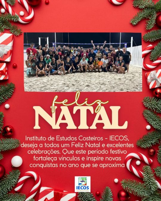 O Instituto de Estudos Costeiros (IECOS) compartilha com a comunidade acadêmica e a sociedade seus votos de Feliz Natal e um próspero Ano Novo de 2026. Que este período de celebrações seja marcado pela união, pelo fortalecimento dos vínculos e pela renovação das esperanças.